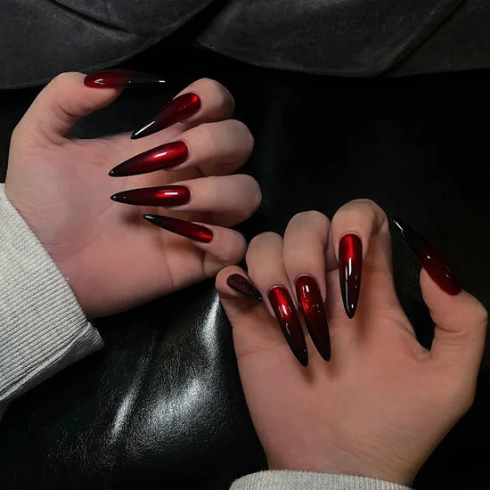 Gothic Red Valentine Nails, Luxury 3D Press-On Set With Crystals & Bows, Dark Romance, Limited Edition