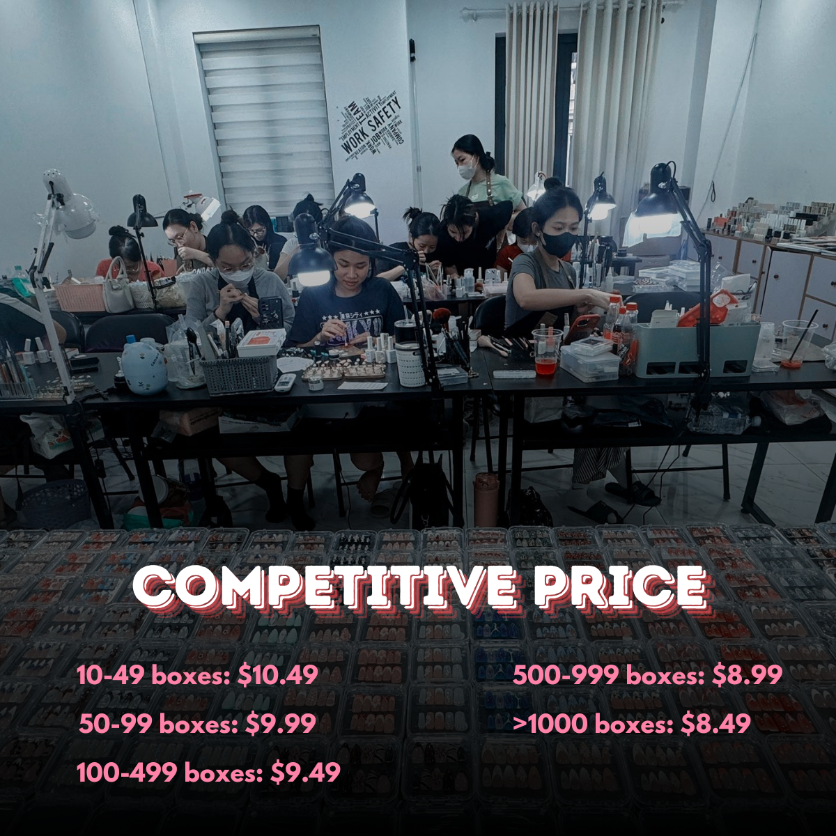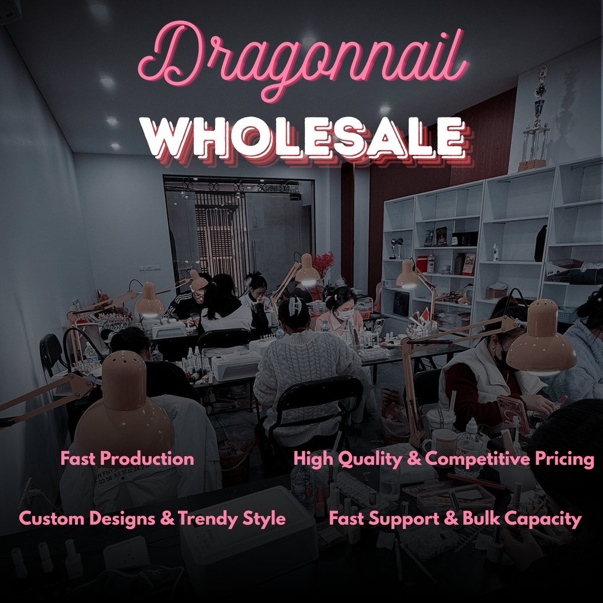 Our experienced production team ensures precision at every stage, while our flexible customization options allow you to bring unique designs to life. With efficient production timelines, trend-driven collections, and strict quality control standards, we are fully equipped to handle high-volume orders without compromising quality. Combined with competitive pricing and dedicated customer support, Dragonnail is the ideal wholesale partner to help your business grow with confidence.