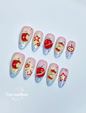 Peel off the top film and align the press-on nail with your cuticle, pressing down firmly from base to tip.