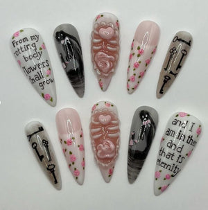 Gothic Rose Pink 3D Heart Spine Design with Vintage Keys and Romantic Quote