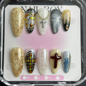 * Peel off the top film and align the press-on nail with your cuticle, pressing down firmly from base to tip.