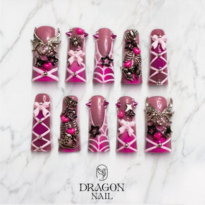 The Berry Whip nail set is inspired by playful Y2K aesthetics and sweet pastel desserts. Soft pink bases are paired with abstract bubble patterns and layered with adorable 3D fruit charms, florals, and candy-like details for a whimsical, eye-catching finish. Every nail feels like a tiny piece of art—cute, creative, and full of personality.