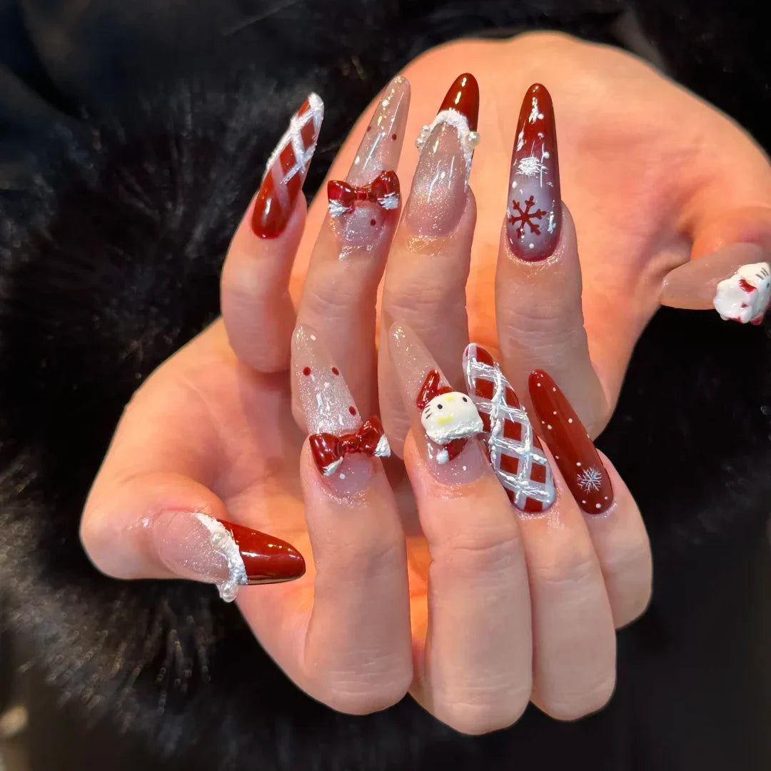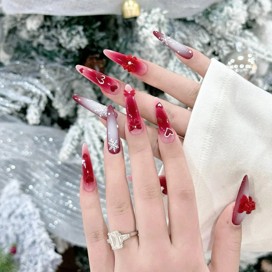 This nail design channels the tranquil beauty of the open ocean with flowing wave-inspired artistry and refreshing aquatic tones. Layers of clear, petal-like textures create a sense of depth and translucence, mimicking light dancing through water, while soft blues and marine hues evoke gentle tides and coastal serenity. Sculpted 3D elements add movement and dimension, giving the design a fluid, immersive feel. The long stiletto shape enhances the dramatic, elegant silhouette, making the overall look bold yet calming. Perfect for beach vacations or summer escapes, this set captures a breezy, sea-inspired mood with artistic sophistication and handcrafted detail.