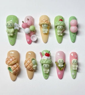 Peel off the top film and align the press-on nail with your cuticle, pressing down firmly from base to tip.