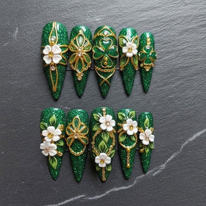 This nail set features a serene blend of soft aqua and pastel hues accented with wisps of cloudy white and delicate shimmer for a dreamy, ethereal look. Each nail showcases a smooth gradient or gentle marbled effect that evokes the calmness of a soft sky at dawn, with subtle sparkles that catch the light for added dimension. The overall palette is light and refreshing, giving the design a tranquil, airy vibe that feels perfect for everyday elegance or a peaceful statement manicure. The gentle interplay of cool tones and muted accents creates a look that’s both sophisticated and soothing.