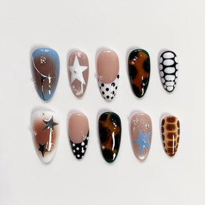Y2K Tortoise Polka Dot Star Aura Press On Nails